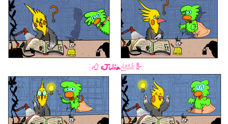 Julia visar att den tecknade serien, använd på rätt sätt, inte ens behöver ord för att berätta en historia. Med klassiska seriesymboler som är kända för alla läsare visar hon med elegans hur hennes superkraft hjälper en idéfattig anka. Bildspråket är både skickligt och konstnärligt smart.